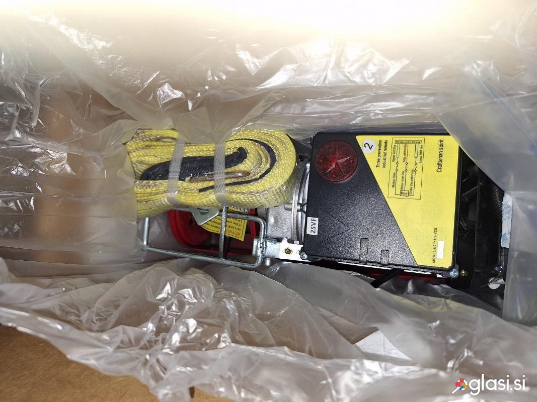 Dvigalo za bale, električno, ki dvigne 800kg preko skripca na 6m . Jeklenica je debela 5mm in je dolga 12m. Enofazni motor 1.5kW. Dalijec in dvigalo je hitro in hitro odzive