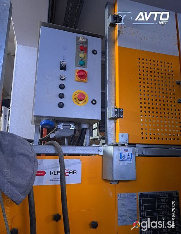 Vertikalno steberno dvigalo Electroelsa EHPM PM-M10 Ver3 ELSA PM-M10(za prevoz materiala in oseb) - letnik 2018 (uporabljen 3x, lepo ohranjen, skladiščen ves čas v pokritem prostoru) -nosilnost: 800kg – največja nosilnost za enofazno (220V) dvigalo -višina: 48,1m(koraki višine po 1,5m) (dokupljeni stolpi do višine 60m) -hitrost: 10,6m/min(enofazno) -moč: 2,2kW(monofazno) -dimenzije platforme: 2,00 x 1,40m – največja platforma za enofazno dvig. -maksimalna višina: 160m -avtomatsko podmazovanje -preobremenilno stikalo -1x komplet strojnica in košara -CE in dokumentacija -53m priključnega električnega kabla -posoda za kabel -32 stolpov(višine 1,5m) -9 kompletov za sidranje (dokupljena še 2 kom) -9 vodil za kabel.