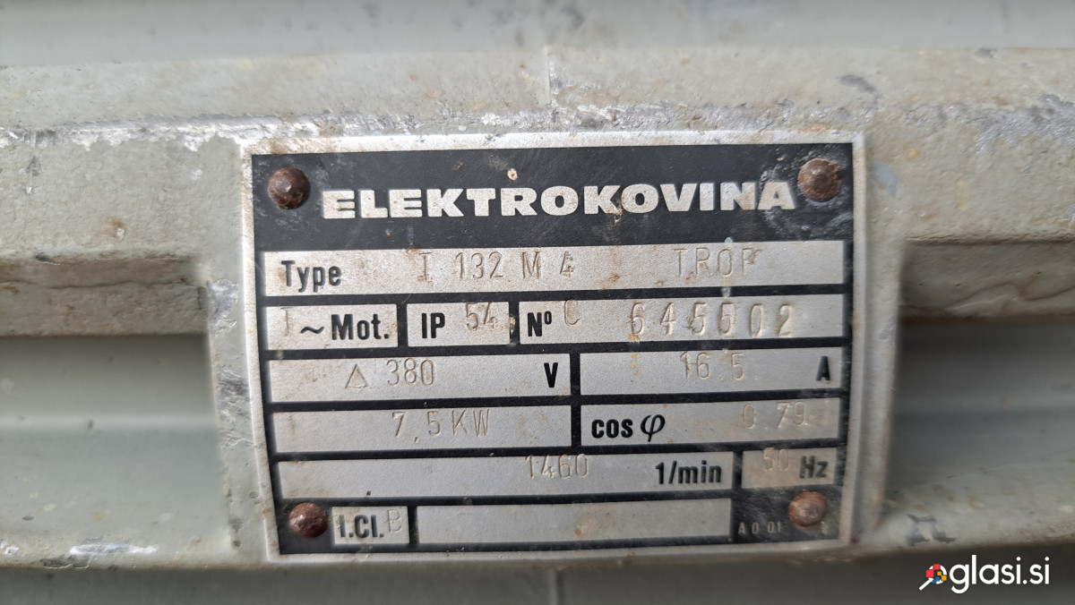 Elektromotor elektrokovina, trofazni, 5,5 kw- 7,5ks 1460obr/min, Z kablom in jermenico, v delujočem stanju. Zelo malo v uporabi.