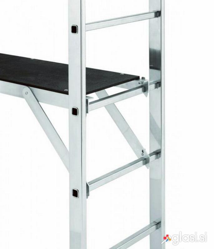 Oder praktično nerabljen , kupljen in uporabljen za projekt leta 2025, ki se je končal in ga ne potrebujem več. Delovni oder 43 Ratio je praktičen in lahek večnamenski delovni oder, ki se lahko uporablja kot stabilen oder ali kot kratka dvodelna prislonska lestev. Namenjen za domačo uporabo. Platforma je priložena.< Št. stopnic: 2 x 6 Višina zloženega odra: 1,71 m Višina lestve v prislonskem načinu: 2,60 m Višina prečne deske: 1,00 m Največja obremenitev: 150 kg Teža: 12,8 kg