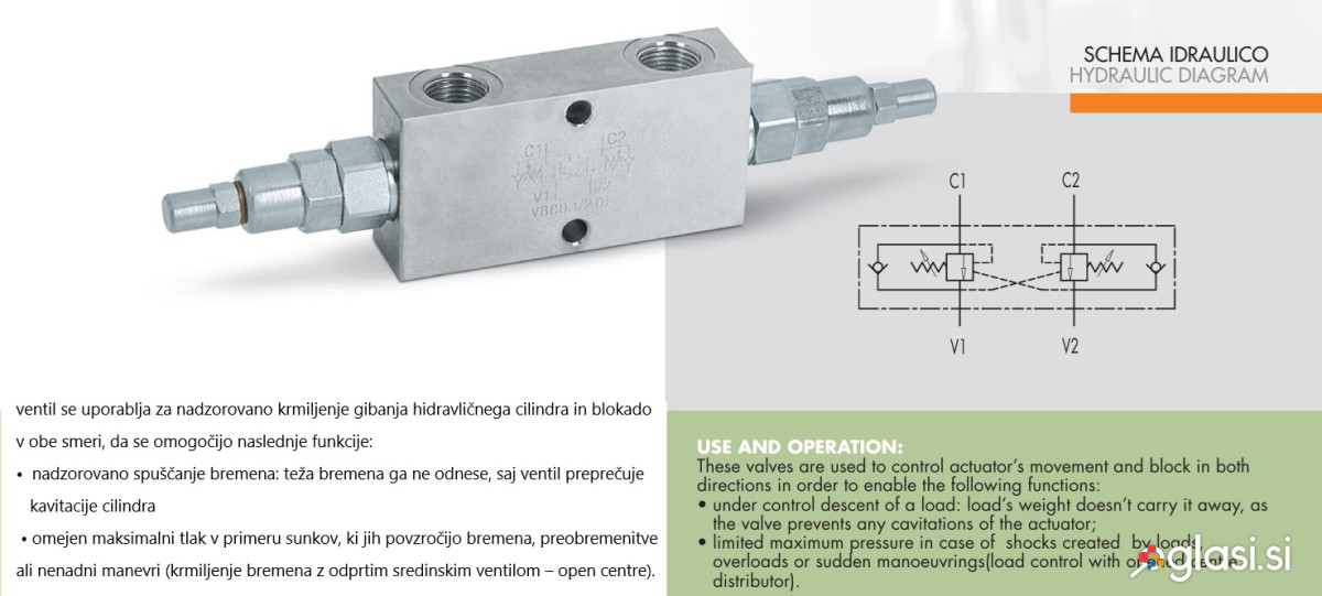 Zaviralni ventili za vgradnjo na hidravlične cilindre. Za dodatne informacije nas prosim kontaktirajte. kontakt: 04/ 515 4420 059/ 077 034 e-mail: info@spg.si