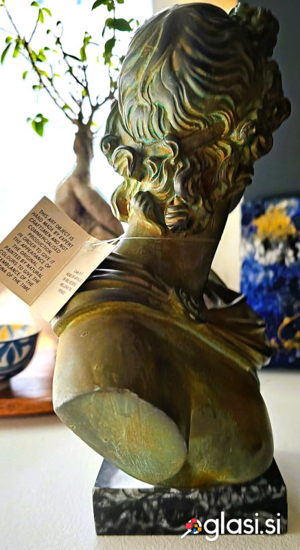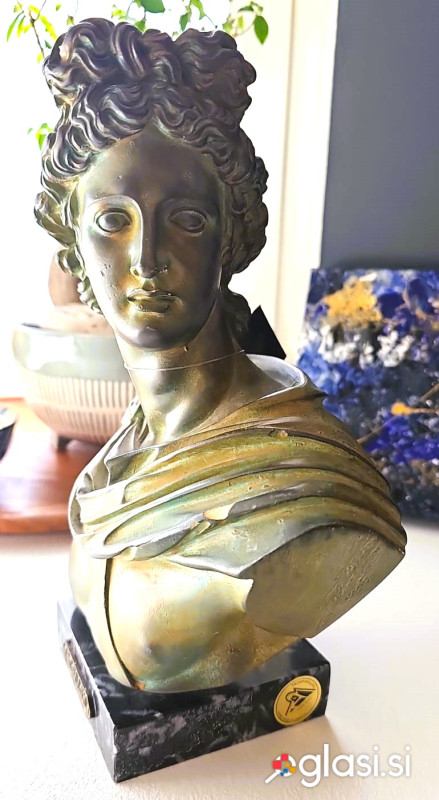 Skulptura - Apolon na marmorni podlagi * Apolonova glava z Belvedera na marmornem podstavku * Helenistično obdobje * ta umetniški predmet so ročno izdelali izkušeni obrtniki, ni komercializirana proizvodnja, ki daje videz izvirnika, ročno poslikanega z naravnimi barvami, da dobimo patino časa dimenzije 11 x 28,5 x 10 cm Apolon (grško: Ἀπόλλων, Apollōn) je v grški mitologiji bog moške lepote, medicine, prerokovanja, lokostrelstva, glasbe, sonca in kolonizacije. Je Zevsov in Letin sin ter Artemidin brat dvojček. Njegov epitet je Feb (Phoebos).