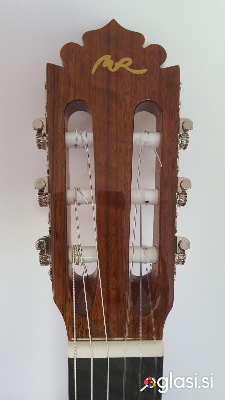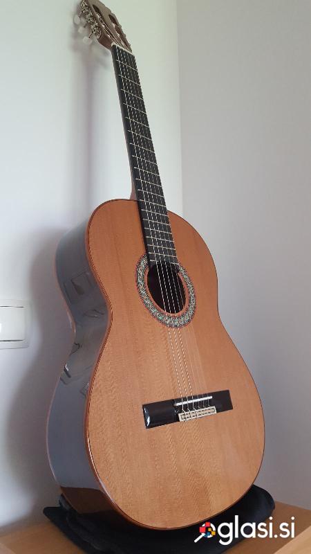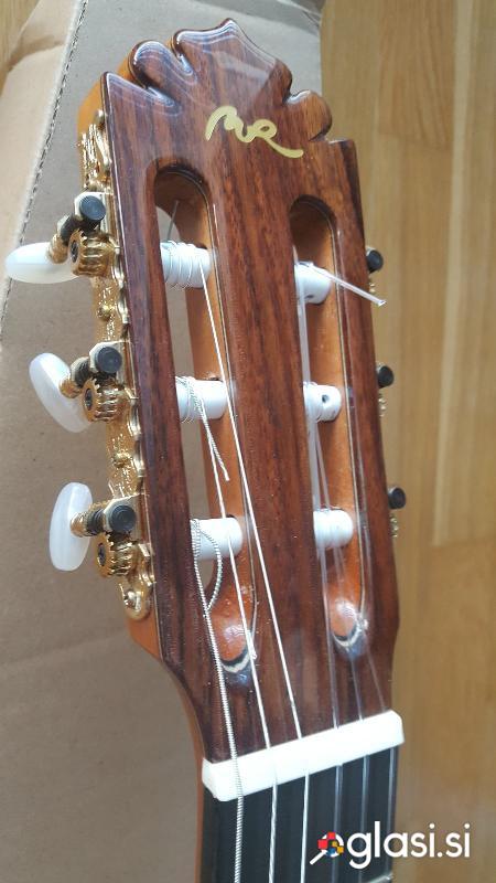Kitara je nova, velikost celinka oziroma 4/4, kitara je Španske izdelave, primerna tako za začetnika kot za naprednejšega kitarista. Manuel Rodriguez Model C1 Classica Klasična kitara C1 s skrbno izbranim zgornjim delom iz trdne kanadske cedre in zadnjim in stranskim delom iz laminiranega indijskega palisandra je čudovita za opazovanje in igranje. Vzglavje in frajtonar sta iz indijskega palisandra. Ponikljani uglaševalci in posrebrene prečke so nameščene tako, da trajajo vse življenje. Vezava telesa in lesena rozeta sta izvrstna.