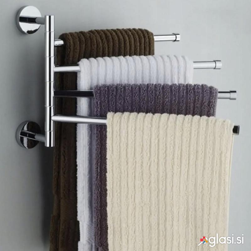FUNKCIONALEN IN ŠTIRIKRAO - obešalnik je sestavljen iz štirih segmentov, od katerih je vsak opremljen z roko, ki lahko drži 2,5 kg bremena , kar vam omogoča, da na enem mestu organizirate več brisač, oblačil ali drugih stvari. Vsako roko je mogoče neodvisno vrteti za 360 stopinj, kar vam omogoča enostavno in hitro spreminjanje položaja segmentov ter prilagajanje obešalnika vašim trenutnim potrebam. Roki sta 8 cm narazen, kar zagotavlja dovolj prostora med obešenimi predmeti, preprečuje dotik in omogoča lažji dostop do njih.