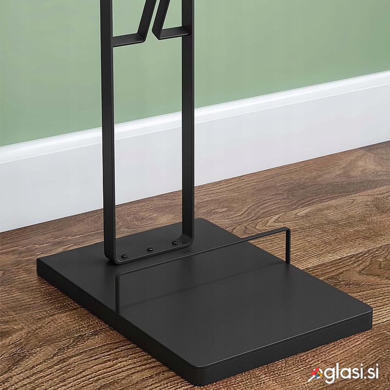 Stojalo, izdelano iz visokokakovostnega jekla, zagotavlja vzdržljivost in stabilnost. Protizdrsne noge zagotavljajo varno uporabo na različnih površinah, skrbna obdelava pa doda eleganco.