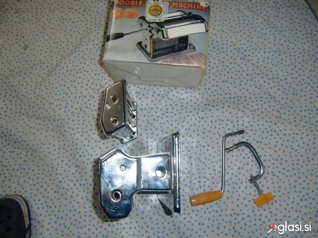 Strojček ročni za valjanje testa in rezanje rezancev -1x valer za vlečenje testa -2x valer za rezanje testa -4x delni ročni strojček -dolžina valev 14,5cm -regulator debelosti valanega testa