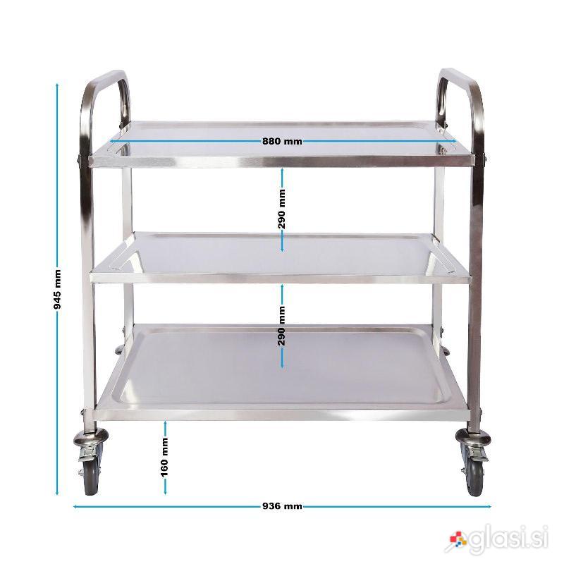 Inox servirni voziček 3 police 150kg - kuhinjski voziček
