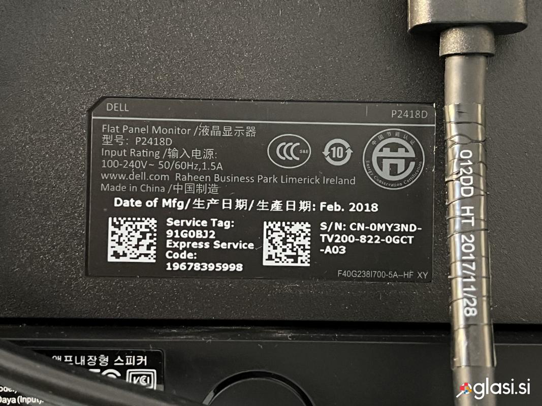 Monitor Dell P2418D, 24 inč, ločljivost 2560x1440 skupaj z Dell soundbar-ob AC511. Brezhiben. (Monitor ima USB3 hub in se prodaja s pripadajočim USB3 kablom - čeprav kabla ni na slikah.)