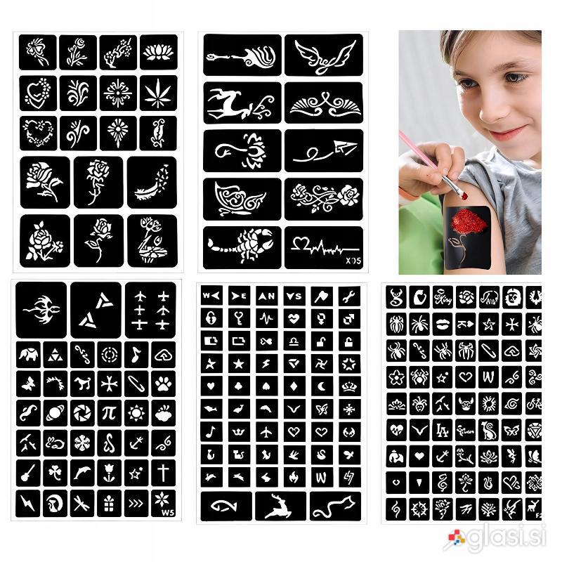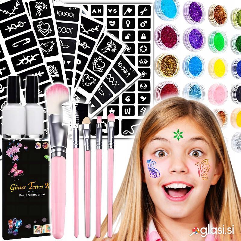 Glitter tattoo komplet za izdelavo bleščečih tatujev 120 šablon