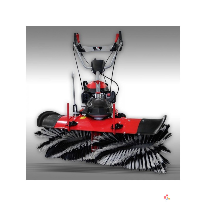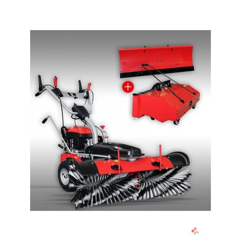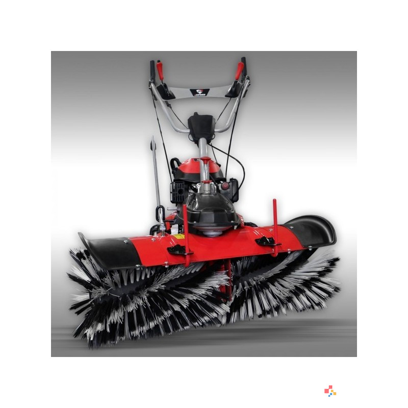 Jansen MKB-500 E je večnamenski stroj, ki je namenjen pometanju-zbiranju smeti in tudi za čiščenje snega. Stroj poganja zmogljiv 6,5 KM bencinski motor z elektronskim zagonom, stroj ima lasten pogon z pomikom naprej in tudi nazaj. TEHNIČNE LASTNOSTI: Večnamenski stroj, ki je namenjen pometanju-zbiranju smeti in tudi za čiščenje snega. Komplet zajema: osnovni stroj, pometač, zbirna posoda za pometač in snežna deska. Stroj poganja zmogljiv 6,5 KM bencinski motor z elektronskim zagonom, stroj ima lasten pogon z pomikom naprej in tudi nazaj. 3 prestave naprej in 1 prestava nazaj. Višina rotorja krtače je nastavljiva centralno z eno ročico. Delavni kot je nastavljiv levo-desno z 5 stopnjami. Hitrost vrtenja krtače je nastavljiva z 6 prestavami. Pometač lahko uporabljate tudi za čiščenje snega tja do 5cm, kar je več je potrebno uporabljati snežno desko. Menjava je enostavna in brez orodij. TEHNIČNI PODATKI: Motor: 4-stroke OHV engine, 6.5 HP / 4.78 kW max. - 3.6 kW / 4.9 HP Gorivo: Neosvinčen bencin Zagon: Elektronski 12V/5Ah (baterija priložena) Delavna širina: 100 cm Premer krtače: 350 mm Dimenzija ščetin : 1.0 x 130 mm Hitrost pomika naprej: 2.5 / 3.6 / 4.5 km/h Hitrost pomika nazaj: 2.5 km/h Prestave naprej: 3 Prestave nazaj: 1 Rezervoar goriva: 1.4 L Poraba goriva: cca. 0.5 L/h Količina motornega olja: cca. 1L (10W40 ali 15W40) Površinska zmogljivost čiščenja: cca. 4400 m²/h Kolesa: 13 - 5.00 - 6 Teža neto: 100 kg Teža bruto: 140 kg Dimenzija neto: 160x103x113 cm (DxŠxV) Dimenzija bruto: 115x85x127 cm (DxŠxV)