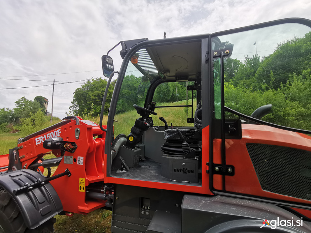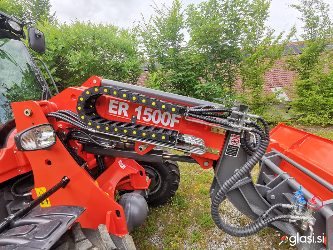 Teleskopski nakladalec Everun ER1500F s štirikolesnim pogonom je odličen vsestranski stroj, ki se ponaša z odličnim razmerjem med kvaliteto in ceno. Z nosilnostjo do 1500kg, Euro 5 motorjem, ki premore 37 KW in več kot 4m dvižne višine ER1500F predstavlja odlično rešitev za široko paleto različnih opravil na vaši kmetiji, domačiji, obratu ali skladišču. TEHNIČNI PODATKI: Nosilnost: 1500 kg Neto teža: 4000kg Dimenzije (d*š*v) - žlica na tleh: 5037*1850*2551 mm Max. dvižna višina: 4105 mm Krmilni sistem Zgibni okvir s hidravličnim servo volanom Min. radij obračanja: 4950 mm Sistem vožnje: Hidravlični pretvornik navora, štirikolesni 4x4 pogon Delovna zavora: Zračne zavore Ročna zavora: Ročno upravljanje MOTOR: Lastnosti motorja: Xichai 498BT (Euro 5) / Vodno hlajeni dizelski motor, 4 cilindri Nazivna moč / hitrost motorja: 37kW (50,32 KM) / 2400 r/pm TEHNIČNE LASTNOSTI: V ceno so všteta standardna žlica (kibla), Pregledna kabina, Elektronski upravljalnik (joistik), Plavajoča nihajna funkcija, Hidravlična hitra menjava za priključke, Nastavljiv volan, Udoben sedež, Vzvratna kamera, Ogrevanje kabine, Grelnik motorja, Os reduktorja koles, Kolutne zavore, 23,5/70-16 kmetijske pnevmatike, Radio, Rotacijska luč, Delavne luči, Ventilator, SERIJSKA OPREMA (všteto v ceni): Standardna kibla 0.48m3 / 1.5m Hitri priklop OPCIJSKA OPREMA (možnost dobave naknadno): Paletne vilice (ročno nastavljive) - PRIPOROČAMO Hitri priklop EVRO - PRIPOROČAMO Paletne vilice (hidravlično nastavljive) Kibla 4 in 1 (odpiralna kibla) Kibla s prijemalnimi kleščami Kibla navadna nizka z ravnim robom Kibla za sneg Kibla za sneg s kraki Hlevske vile - Vilice za gnoj Prijemalne vile Prijemalne klešče za bale Snežna deska - plug navadni ravni Snežna deska - "V" plug - dvokraki nastavljiv Pometač Kopač - Roka s kiblo Sveder za zemljo VIDEO: https://www.youtube.com/watch?v=XLa1WOL9jgk