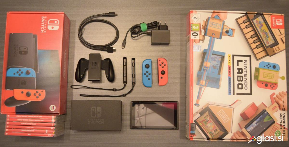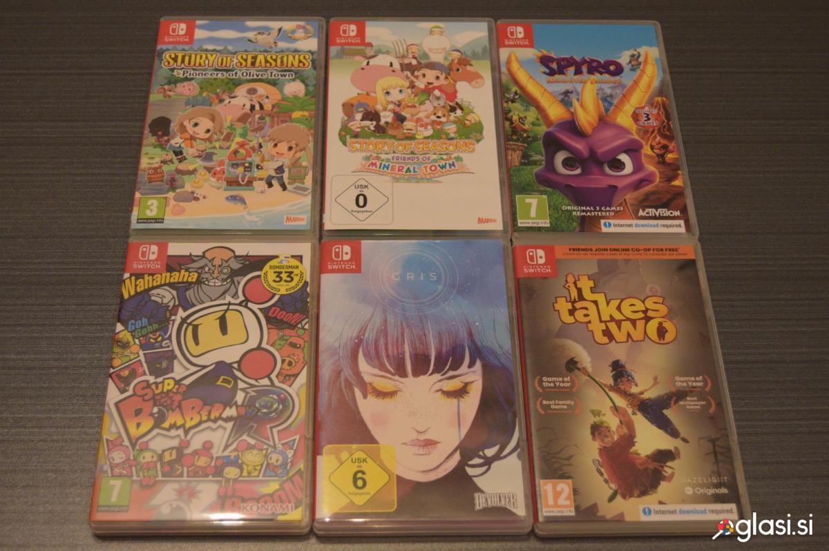 Nintendo Switch z vsem kar je na slikah. Konzola je bila uporabljana skrbno, brez poškodb. Baterija drži dobro. - 1x Nintendo SWITCH z zaščitnim steklom - 2x Joy-Con (L-R) - 2x Wrist Strap (L-R) - 1x Joy-Con Grip - 1x Switch dock - 1x Adapter za Switch - 1x HDMI kabel - Originalna embalaža - 1x LABO set (praktično neuporabljen) - 1x torbica za Switch Switch IGRE: - 1x GRIS - 1x Spyro Reignited TRILOGY - 1x Super Bomberman - 1x It takes two - 1x Story of Seasons - Pioneers of Olive Town - 1x Story of Seasons - Friends of Mineral Town - 1x LABO + set Prodam samo vse v kompletu! Prosim kličite popoldne. Samo oseben prevzem
