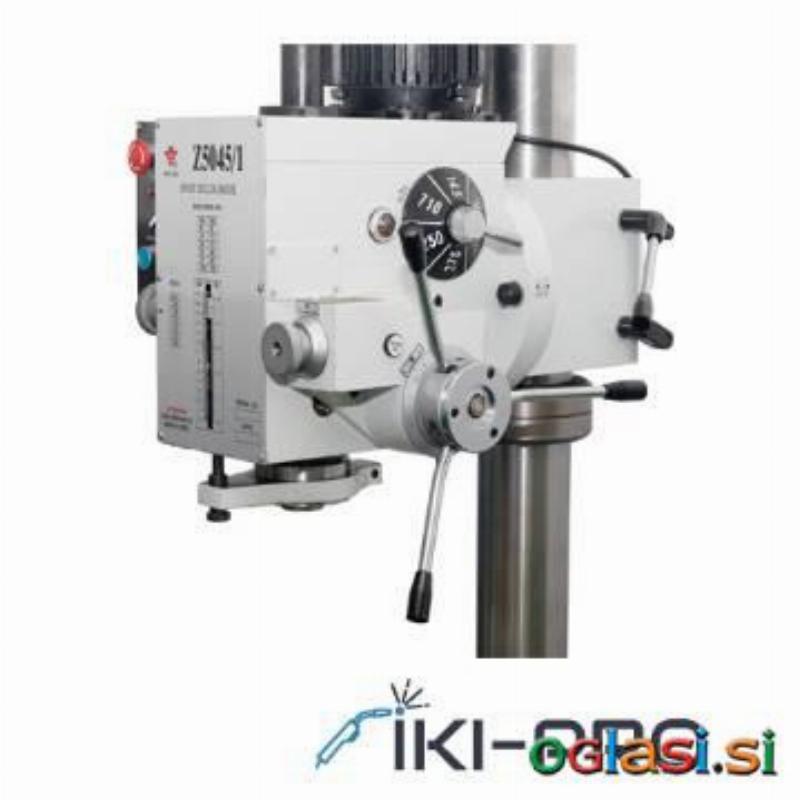 Izjemno stabilen steberni vrtalni stroj je nepogrešljiv za vse serijske proizvodnje, industrijo in delavnice. KARAKTERISTIKE STROJA: Maksimalna zmogljivost vrtanja – 45 mm Konus v pinoli - MK4 Hod vretena – 130 mm Stopnje vrtenja - 12 Hitrost vrtenja – 80 - 2500 vrt./min Minimalna distanca od osi vretena do stebra - 290 mm Največja distanca od vretena do delovne mize - 725 mm Največja distanca od vretena do mize stojala - 1125 mm Vertikalni hod glave vrtalnika - 250 mm Kot zasuka mize - 360°, +/- 45° Zasuk mize - 360 ° Naklon mize - +/- 45 ° Horizontalni in vertikalni kot glave: 360° Velikost delovne mize - 417 X 416 mm Vertikalni hod mize - 570 mm Moč motorja - 1,8 KW Neto teža-Bruto teža - 460kg / 500kg Pakiranje – 1850x820x770 mm OPREMA strojni pomik pinole hladilni sistem ( emulzija ) delovna svetilka ( LED ) nastavek za vrt. glavo MK2 reducirna puša MK4–MK3 dvig / spust mize zasuk mize +/- 45° IKI-PRO d.o.o. narocila@iki-pro.si 040 260 560