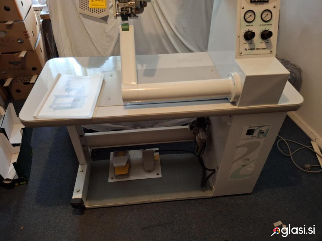 Stroj industrijski za varjenje /tesnjenje šivov, z vročim zrakom, Nawon Machinery Golden Master Series HTM-3588. Stroj je praktično nerabljen, kot nov, rabljen manj kot 1 uro - bil je samo stestiran, vendar za našo dejavnost ni bil ustrezen. Priložimo tudi navodila za uporabo in nekaj kolutov.