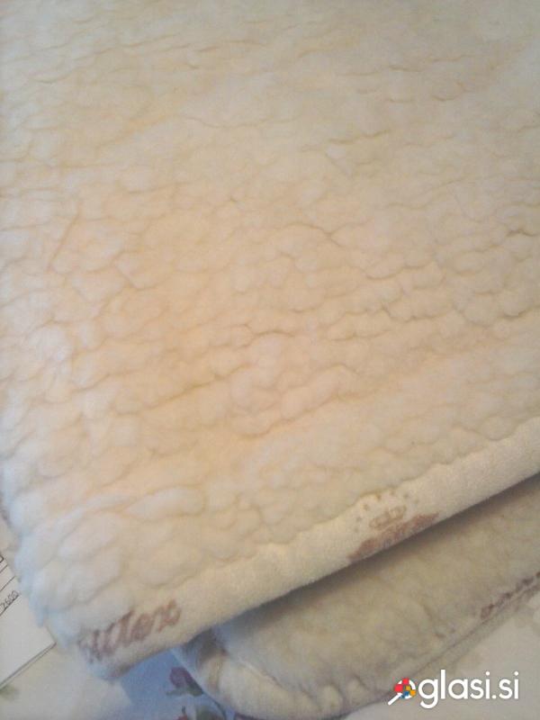 Merino izdelki Bavaria Volltex Company: - odeja merino BWC dimenzij 190x130cm debeline 2cm (debela, kompaktna) x 1 kos = cena je 80,00 eur - odeja merino BWC z motivom konja dimenzije 200x140 cm debeline 2cm (debela, kompaktna) x 1 kos = cena je 100,00 eur - nadvložek BWC merino za jogi dimenzij 200x100 cm debeline 2-3 cm = cena je 100,00 eur - merino vzglavnik BWC 80x30 višine 13cm (2 kosa) = cena je 30,00 eur - blaznina merino SKC tri-delna z notranjim vložkom 180x90cm debeline 6 cm vse snemljivo in pralno x 1 kos = 100,00 eur Dimenzije posameznih izdelkov so približne. Posteljnina je rabljena, vendar dobro ohranjena.