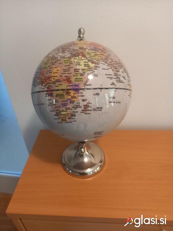 Globus z premerom krogle 20 cm in višine 33 cm.