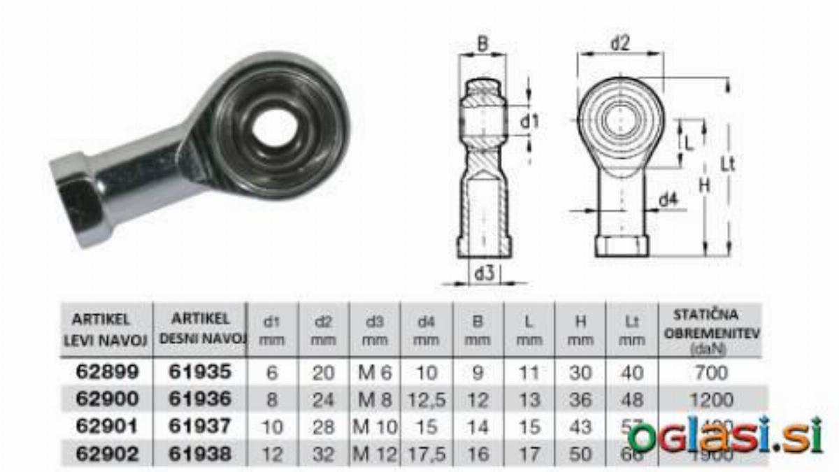 61935 - OČESNI ZGLOB Z NOTRANJIM NAVOJEM DESNI M6 61936 - OČESNI ZGLOB Z NOTRANJIM NAVOJEM DESNI M8 61937 - OČESNI ZGLOB Z NOTRANJIM NAVOJEM DESNI M10 61938 - OČESNI ZGLOB Z NOTRANJIM NAVOJEM DESNI M12 62899 - OČESNI ZGLOB Z NOTRANJIM NAVOJEM LEVI M6 62900 - OČESNI ZGLOB Z NOTRANJIM NAVOJEM LEVI M8 62901 - OČESNI ZGLOB Z NOTRANJIM NAVOJEM LEVI M10 62902 - OČESNI ZGLOB Z NOTRANJIM NAVOJEM LEVI M12 Cena od 4,33 EUR OČESNI ZGLOB Z NOTRANJIM NAVOJEM DESNI/LEVI Ponudbo in tehnične podatke najdete na spletni strani, kjer lahko tudi oddate naročilo. VSE CENE SO Z DDV Možnost napak pri vnosu podatkov, za točne podatke in zalogo preverite pri prodajalcu. Možna dostava s pošto. Kontaktirate nas lahko na info@agritehnika.si