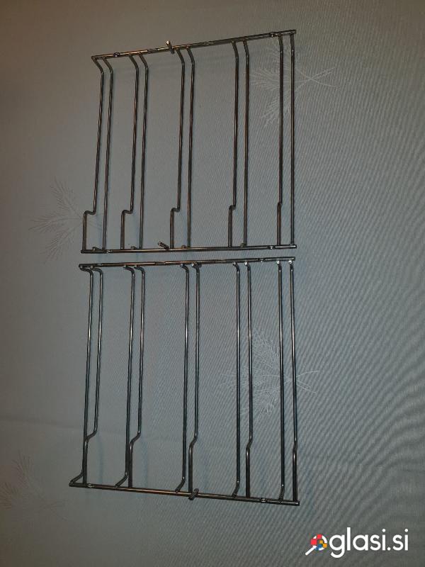 Vodila za pečico Bosch serija 8. Vodila so popolnoma nova, nikoli uporabljena, brezhibna. So petnivojska, primerna za pirolizo, kar pomeni, da prenesejo visoko temperaturo (450°). Kupili smo novo pečico Bosch serija 8. Ker smo želeli teleskopska izvodila (na izvlek), smo le - te dokupili, originalna vodila pa so ostala in jih prodajamo. Verjetno ustrezajo tudi drugim serijam Bosch pečic.