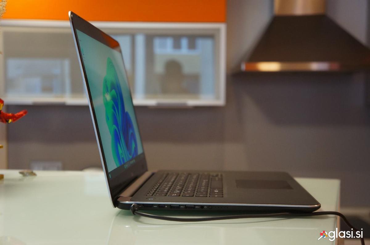 Prenosnik Dell XPS 15, ki je bil ob izidu absolutni vrh ponudbe. Njegov največji adut je neverjeten UltraSharp QHD+ zaslon na dotik z ločljivostjo 3200 x 1800, ki ponuja neverjetno ostrino in natančne barve, zaščiten pa je s Corning Gorilla Glass steklom. Ohišje je izdelano iz vrhunskih materialov: zunanjost iz brušenega aluminija, notranjost pa iz mehkih karbonskih vlaken. primeren za resno delo, obdelavo fotografij ali multimedijo. Specifikacije: Zaslon: 15,6" QHD+ (3200 x 1800) IPS Touch – zaslon na dotik z izjemno ločljivostjo Procesor: Intel Core i7-4702HQ Pomnilnik (RAM): 16 GB DDR3L Disk: 256 GB SSD Grafika: NVIDIA GeForce GT 750M (2GB GDDR5) Materiali: Aluminij, karbonska vlakna, Gorilla Glass Operacijski sistem: Windows 10 Pro Opomba glede baterije: Baterija ne drži več, zato prenosnik deluje le na priloženem polnilcu. Zaradi brutalnega zaslona in močnih komponent je idealen kot stacionarni računalnik za nekoga, ki ceni vrhunsko sliko in kakovostno izdelavo.
