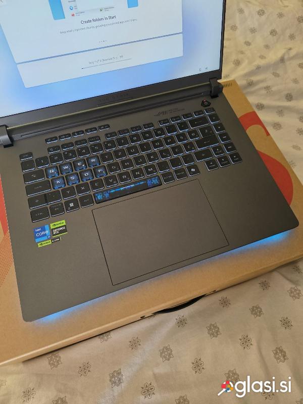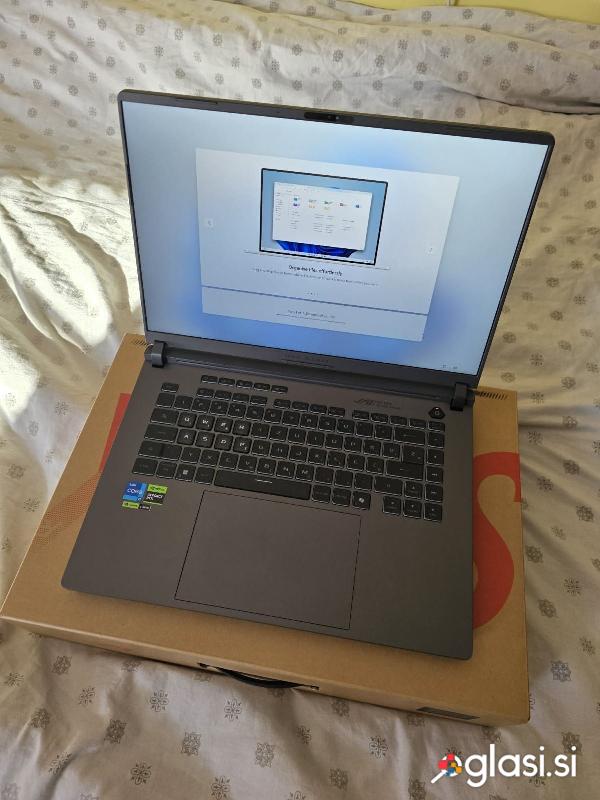 Prenosnik, ASUS ROG Strix G16 i7-14650HX, 16GB, 1TB, RTX 50, 1 mesec star, gaming , kupljen po ceni 1933 eur. Prodam ga za omenjeno ceno v oglasu. Specifikacije: Intel® Core™ i7 Processor 14650HX 2.2 GHz (30MB Cache, up to 5.2 GHz, 16 cores, 24 Threads) NVIDIA® GeForce RTX™ 5050 Laptop ROG Boost:1955MHz at 115W 16-inch FHD+ 16:10 (1920 x 1200, WUXGA) 165hz zaslon 1TB NVMe SSD 16GB DDR5-5600 SO-DIMM RAM 24 Mesecev garancije, kupljen pri mimovrste, priložemn račun! Prenosnik je kupljen v SLO! Ogled možen le na naslovu, brez dostav ali menjav. Dosegljiv le s klicem