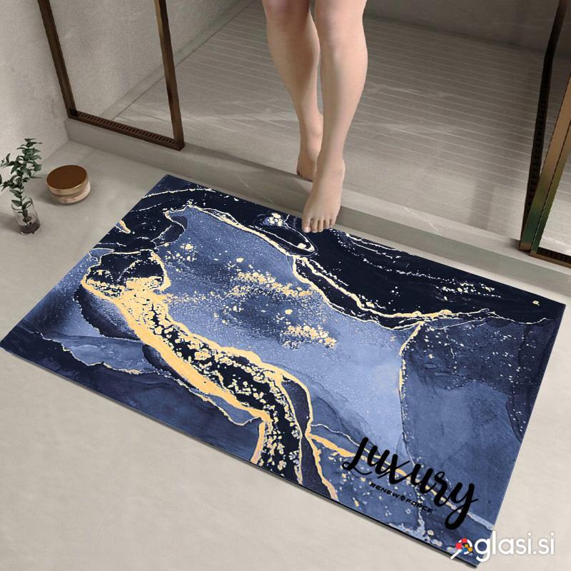 ELEGANTNA OBLIKA Naša predpražnica ima eleganten dizajn, ki posnema marmor z zlatimi detajli. Dodajte svoji kopalnici pridih razkošja!