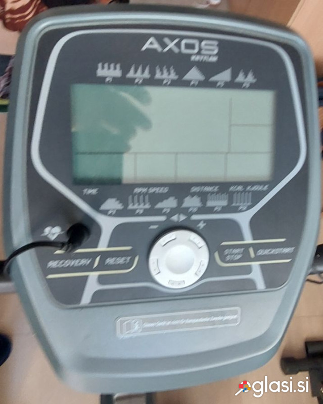 Sobno kolo Kettler Axos. Kolo je malo rabljeno in je v odličnem stanju. Tehnične podrobnosti: material: kovina, plastika prikaz računalnika: merjenje časa, razdalje , hitrosti, poraba energije zaslon: da merjenje srčnega utripa: ročni senzor zgornja meja srčnega utripa: optični signal merjenje srčnega utripa v fazi umirjenosti: da vadba v ciljnih conah: da trajni prikaz za: 6 funkcij zavorni sistem: magnetni zaščita tipkovnice pred znojem: da prenos moči: jermenski teža vztrajnika: 6 kg območje moči: 1–8 (ročna nastavitev) nastavitev višine sedeža: da hitra nastavitev višine sedeža: da krmilo: naklonsko nastavljivo samoizravnalni pedali s paski: da električno napajanje: baterije maksimalna obremenitev: 110 kg dimenzije: 144 × 60 × 80 cm