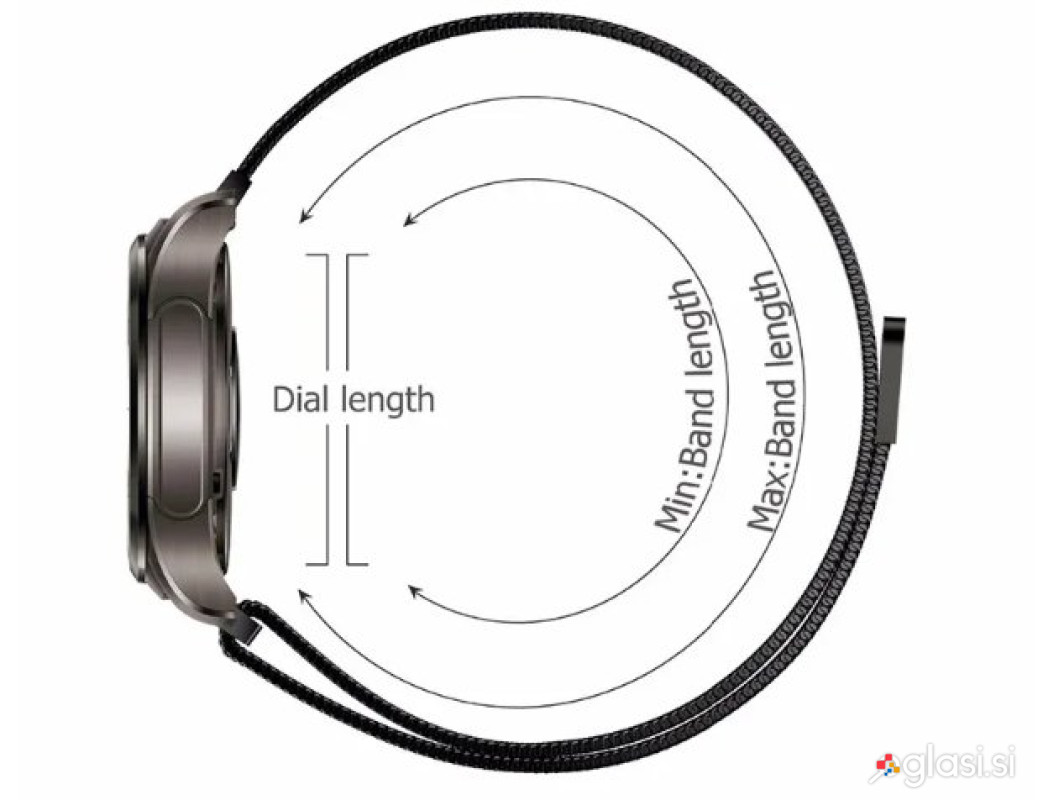 Pašček za uro, kovinski, nerabljen, z magnetnim zapenjanjem, za uro 22mm