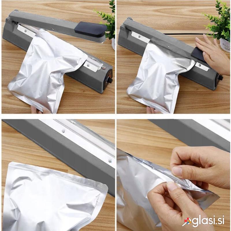 UNIVERZALNA UPORABA – deluje za varjenje folijske embalaže, kot so vrečke, folije v zvitkih ali vrečke, in celo ovoji za dokumente . Uporablja se lahko za večino materialov, ki se spajajo pod vplivom temperature (npr. folije iz PE, PP, PVC, kot tudi mehurčkaste folije).