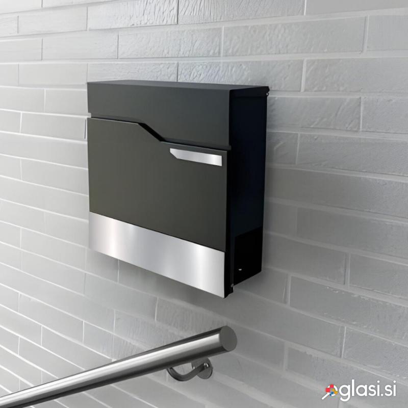 Odkrijte vrhunski poštni nabiralnik, ki združuje eleganco, funkcionalnost in trajnost. Moderni poštni nabiralnik z režo za časopise v antracit barvi in inox detajli, model X9, je popolna izbira za sodoben dom ali poslovno zgradbo.