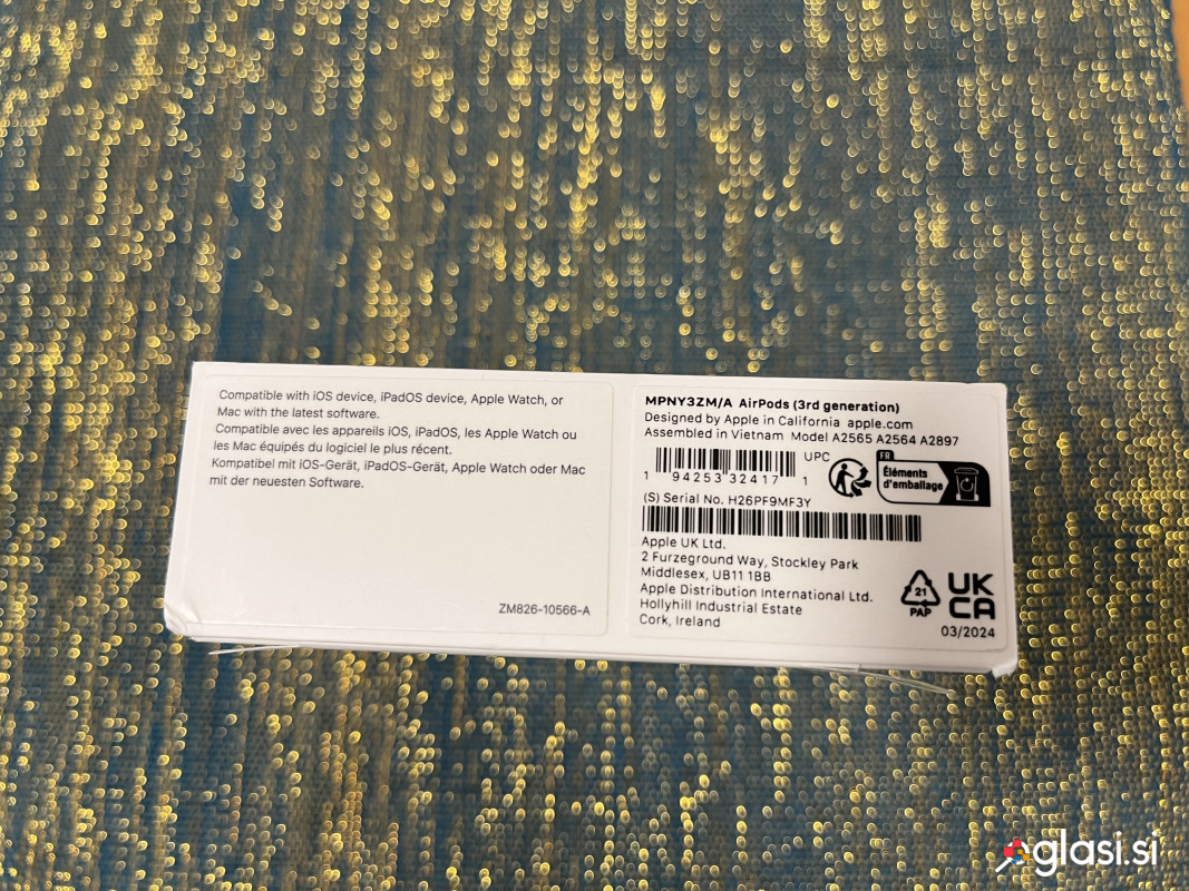 SLUŠALKE, nove originalne AirPods, tretje generacije, z lightning charging case. Škatla je neodprta. Dobila sem jih za rojstnodnevno darilo in glede na to da ene že imam bi te prodala.