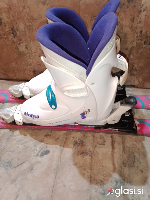 Smuči dekliške Elan, v kompletu z vezmi, dolžine 130 in pancarje Alpina št. 26. Stanje je kot na slikah. Prodaja se po sistemu "videno-kupljeno"... Reklamacija, vračanje denarja, pripombe,... po nakupu niso možne... Vse informacije na telefon ali ZS, v nobenem primeru ne pošiljam, možen samo osebni prevzem v Logatcu, plačilo pa z gotovino