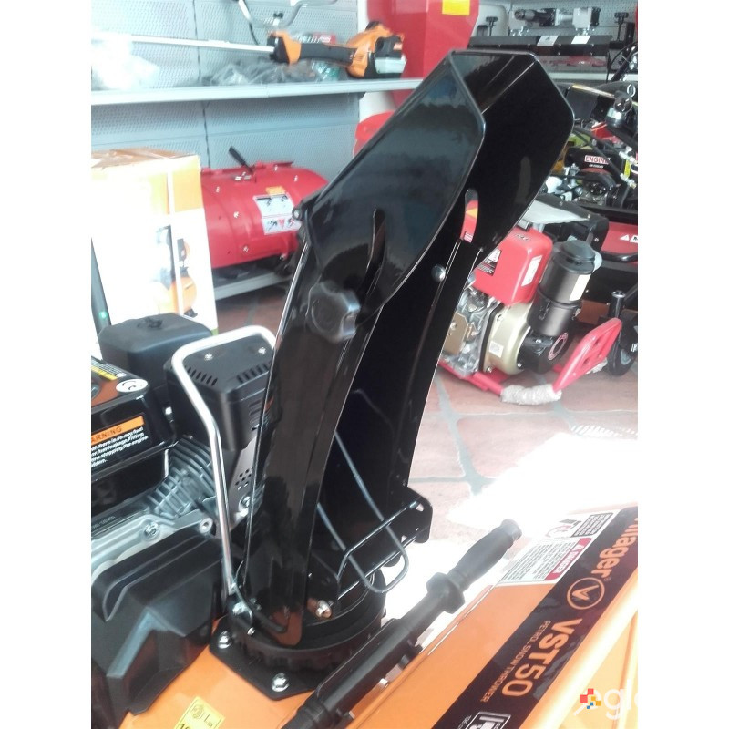 Snežna freza Villager VST 50 na kolesih, moči 5 konjskih sil. Kvalitetna izdelava in zanesliv delovni agregat Loncin. Freza je dvostopenjske zasnove, kar omogoča učinkovito in hitro čiščenje oziroma odmetavanje snega. Delovna širina znaša 53, višina pa 51 centimetrov. Majhna, lahka a učinkovite snežna freza. TEHNIČNI PODATKI: motor: Loncin, 4 taktni OHV, bencinski delovna prostornina: 196 cm³ moč motorja: 3.6 kW (5 KS) število prestav: 4 naprej - 1 nazaj delovna širina: 53.5 cm največja višina snega: 51 cm daljava izmeta: 5 - 11 m rezervoar goriva: 3.6 l rezervoar olja: 0.6 l pogonsko gorivo: neosvinčen bencin masa: 60 kg TEHNIČNE LASTNOSTI: dvostopenjska konstrukcija (pobiralni polž + izmetni ventilator) vrsta pogona freze: kolesni pogon s snežnim profilom ZAGON: ročni reverzibilni zaganjač obračanje imetnega žleba levo-desno, gor-dol fizično močna konstrukcija košare, ojačan pobiralni polž in izmetni ventilator "Y" ojačitveni element, ki je z namenom ojačitve pritrjen iz reduktorja polža na ohišje košare. zaprti kroglični ležaji