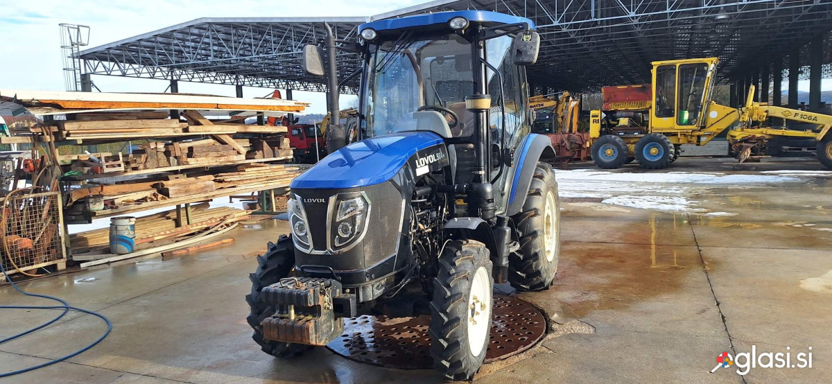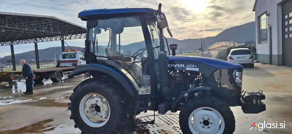 LOVOL 504 4x4 , z grelno tapecirano kabino ,z klimo , z kompresorjem in komplet inštalacijo za dvokrožni zavorni sistem sistem ,z inventarjem z novimi gumami spredaj in 90 % zadaj z spodnjim in drsnim priklopom ,z 4 cilindričnim vodno hlajenim motorjem ,z hidravličnim volanom in 4 hidravlični izhodi