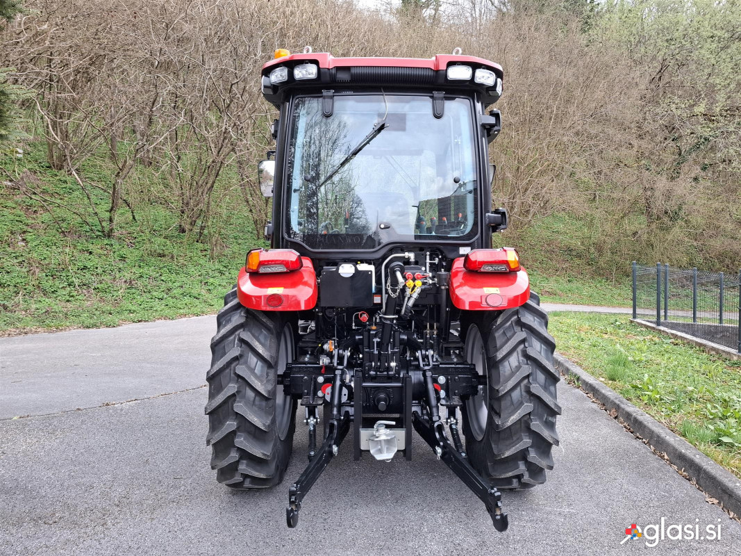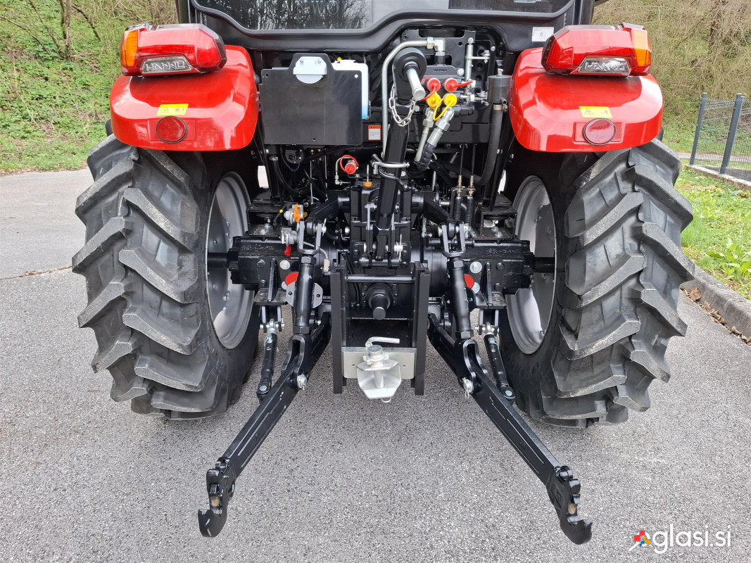 Traktor NTS 704-PRO s čelnim nakladačem se ponaša s 75 konjskimi močmi, štirikolesnim pogonom z možnostjo preklopa, ter robustnim menjalnikom z 12 prestavami naprej in 12 nazaj. V SBAY iz Grosuplja vam zagotavljamo 24 mesečno garancijo in celovito podporo. Sprednji čelni nakladač z nosilnostjo do 600 kg ter večnamenska 4V1 kibla, traktorju omogočata vsestranskost in fleksibilnost pri vseh vrstah opravil. Luksuzna kabina z ergonomskim sedežem, nastavljivim volanom, klimatsko napravo ter naprednimi LED žarometi nudi popolno udobje in vidljivost. NTS 704-PRO združuje zmogljivost, vsestranskost in zanesljivost, kar ga postavlja med najboljše izbire za vse vrste opravil. MOTOR: Znamka: Yuchai Model motorja: YCF3075 Emisijski standard: EURO 5 Nazivna moč: 55,8kW / 75KM Nazivni obrati motorja: 2200 r/min Max. navor: 2800Nm Prostornina motorja: 2980cc Način vbrizga goriva: Turbo vbrizg DPF filter: Da POGONSKI SKLOP IN UPRAVLJANJE: Tip pogona: Štirikolesni pogon (možnost preklopa 4WD ali 2WD) Tip sklopke: Dvojna sklopka, Suha Tip krmiljenja: Hidravlični servo volan Tip diferenciala: Navadni mehanski Tip zavor: Disk zavore Tip ročne-parkirne zavore: Navadna mehanska MENJALNIK: Število prestav (Naprej/Vzvratno): 12+12 (3x 4 prestave) Tip menjalnika: Navaden ročni delno sinhroniziran menjalnik, z invertejrem Končni prenos: Planetarni zobniški reduktor Max. hitrost: 25,90km/h Razpon hitrosti naprej: 1,47-25,90km/h Razpon hitrosti nazaj: 1,29-22,70km/h Količina menjalniškega olja: 35L HIDRAVLIČNI SISTEM, ZADNJE VPETJE in PRIKLJUČKI: Pretok hidravličnega olja: 36L/min Tri točkovno vpetje - priključno drogovje: Kategorija 2 Sistem vpenjanja: Spodnji točki z hitrovpenjalnimi-avtomatskimi kljukami, zgoraj navadni navojni Top-link Metoda prilagajanja tri točkovnega vpetja: Hidravlični nadzor položaja-višine in prosti plavajoči gib hidravlike, Celovita nastavitev sile in položaja Sila dviga tritočkovnega vpetja (okvir): 13,5kN Nosilnost dviga tritočkovnega vpetja: 1376kg Tip kardana: zadnji Moč na kardanu: ≥44,6kW Hitrost vrtenja kardana: 540rpm / 1000rpm (2 hitrosti) Število zob kardana: 6 Hidravlični priključki: 2 para priključkov zadaj Rezervoar hidravličnega olja: Ločen rezervoar kapacitete 30L Priklop za prikolico: U-priklop Priključek za zračne zavore: Da Priključek za elektriko: Da DIMENZIJSKI PODATKI in MASA: Teža traktorja: 3360kg (brez čelnega nakladača) / 4120kg (z čelnim nakladačem) Celotna dolžina traktorja: 4206mm (brez čelnega nakladača) Celotna širina traktorja: 1782mm Celotna višina traktorja: 2781mm Medosna razdalja: 2050mm Razmik sprednja kolesa (center-center): 1320mm Razmik Zadnja kolesa (center-center): 1400mm Najmanjši odmik od tal: 360mm Radij obračanja: 4,5m Tip pnevmatik: Radialne Dimenzije sprednjih koles: 280 / 70 R20 Dimenzije zadnjih koles: 380 / 85 R28 Rezervoar goriva: 75L Poraba goriva podana pri maksimalni moči ter 2200 r/min: 13.2kg/h (15,7L/h) Sprednje uteži: 100kg Uteži na zadnjih kolesih: 94kg LASTNOSTI SPREDNJEGA ČELNEGA NAKLADAČA: Največja nosilnost: 600kg Širina kible: 1652mm Volumen kible: 0,43m3 Max. višina kipanja: 2300mm Max. globina zajema: 140mm Max. umik kipanja: 1140mm Teža-masa skupaj z 4V1 kiblo: 770kg Tip priložene kible: Večfunkcijska 4V1 kibla z hidravličnim odpiranjem-zapiranjem (Funkcije: Zajemanje materiala, Kipanje materiala, Opcija grabeža-prijemala, Opcija poravnalne deske-pluga) Tip priklopa: EU priklop z mehanskim hitrim priklopom Hidravlična linija: Da, 1 par hidravličnih priključkov Sistem upravljanje: Joystick komanda v kabini TEHNIČNE LASTNOSTI: Klimatizacija-prezračevanje kabine: klimatska naprava za hlajenje, ventilacija, gretje kabine Oprema kabine: luksuzna ergonomska kabina z ravnim dnom, ergonomski nastavljiv sedež Grammer, nastavljiv volan, radio z ozvočenjem, osvetlitev, digitalni in analogni inštrumenti Žarometi: glavne luči, 8x delavne luči (2x spredaj, 2x zadaj, 4x s strani), rotacijska luč Tip žarometov: v LED tehnologiji GARANCIJA 24 mesecev ali 1000 ur Za brezskrbno uporabo vam zagotavljamo celovito podporo: strokovni servis, možnost servisa na terenu ter stalno dobavljivost rezervnih delov. Z vami smo tudi po nakupu.