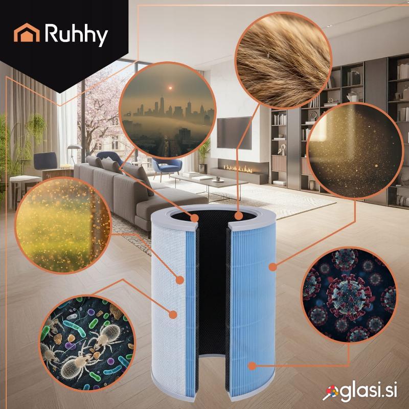 - HEPA H12 filter + aktivno oglje = 99,5 % čistejši zrak. Tristopenjska filtracija (predfilter + HEPA + aktivno oglje) ujame alergene, prah PM2,5, bakterije in vonjave. Idealno za alergike, družine z otroki in lastnike hišnih ljubljenčkov.