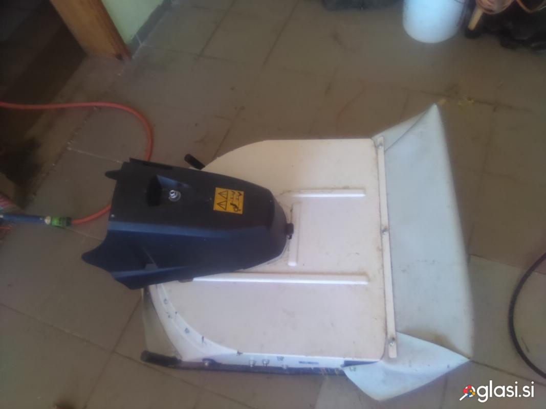 Kosilnico motorno z različnimi priključki: mulčerjem, posodo za pokošeno travo, dodatnimi železnimi kolesi za košnjo po nagnjenem terenu, utežmi, ki držijo motor v pravilnem položaju pri košnji brežin - vse je v brezhibnem stanju!