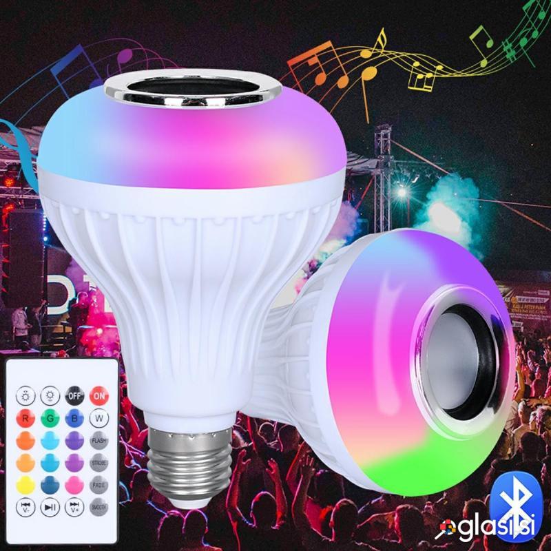 Barvita RGB LED žarnica z Bluetooth zvočnikom, napajana iz električnega omrežja.
