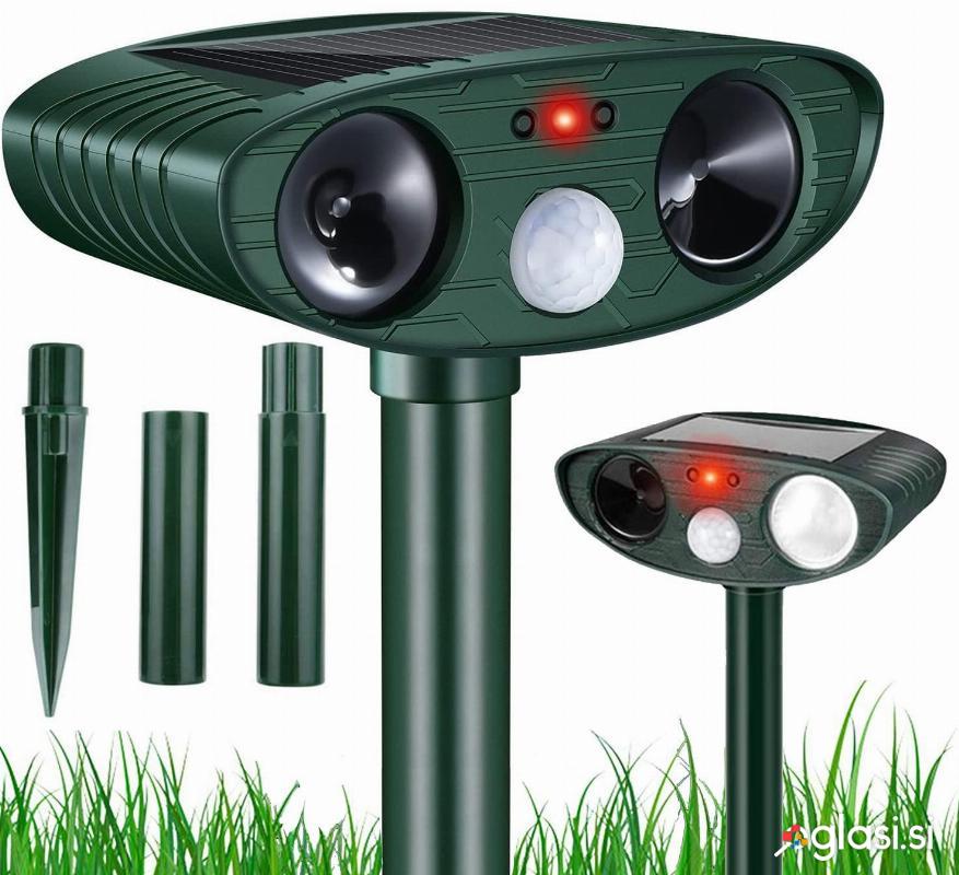 Ultrazvočni LED solarni odganjalec živali s senzorjem gibanja