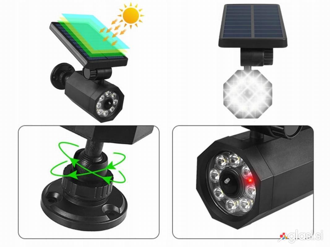 Solarna LED lažna kamera in svetilka s senzorjem gibanja in mraka