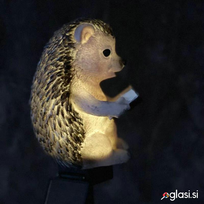 Nenavadna, solarna LED vrtna svetilka v obliki ježka, ki bere knjigo. Odličen dekorativni element. Svetilka se napaja s sončno energijo, ki s pomočjo solarne plošče polni vgrajeno polnilno baterijo. Naprava se samodejno zažene, ko se zmrači (opremljena je s senzorjem mraka), polna baterija pa zadošča za do 8 ur neprekinjenega delovanja. Svetilka ima LED, ki oddaja belo svetlobo. Močna konica omogoča zanesljivo in hitro namestitev svetilke v tla, vodotesno ohišje pa zagotavlja nemoteno uporabo ne glede na vremenske razmere.
